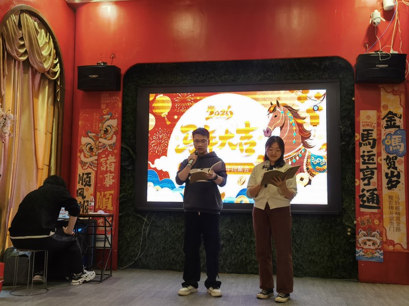 才华在此刻绽放,欢乐于此处共鸣。当主持人罗忠宇、宁欣语说完开始节目环节,属于青春的活泼能量瞬间迸发。张忠源、罗晓玉、温佳雪、李诺羿表演的舞蹈《蹦蹦跳跳过大年》以超标的活力值,瞬间点燃聚会气氛;随后李佳璇、崔赢元一曲《Last Dance》深情婉转,唱出了时光的眷恋与美好。陈献、武凌坤、罗忠宇、李佳璇、王明雪、郝艳忠创意舞蹈《九九八十二难》以幽默姿态演绎科研“修行”,姜泽涛、张树昕的相声《规矩论》则用实验室里趣事引发满堂会心欢笑。陈韦妍独舞《春颂》翩若惊鸿,仿佛将盎然春意提前带到眼前;而研一新生李嘉欣、花雨欢、薛聪聪、唐小宇、马龙腾、李玉磊大合唱《明天会更好》则用清澈歌声,为所有努力与坚持注入了最温暖的慰藉与希望。