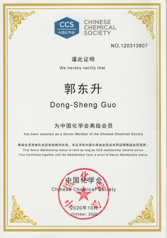 祝贺郭东升教授晋升为中国化学会高级会员