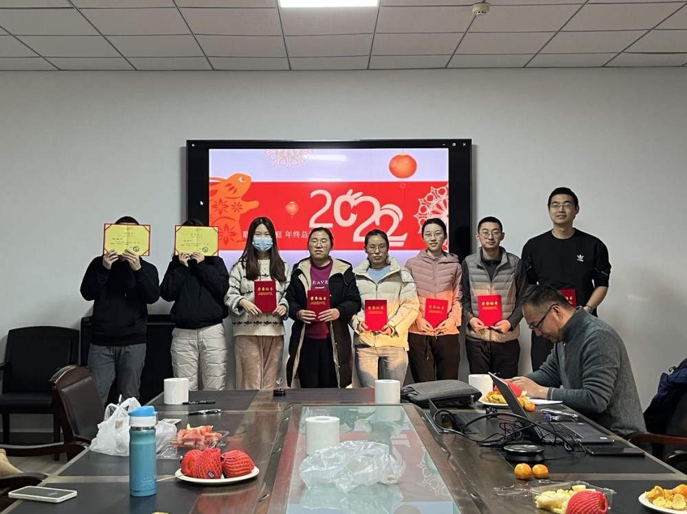2023.01.09,课题组举办了2022年年终组会,会上老师同学们观看了年终总结视频,同时申请课题组年度奖项的申请同学进行了PPT展示,经过