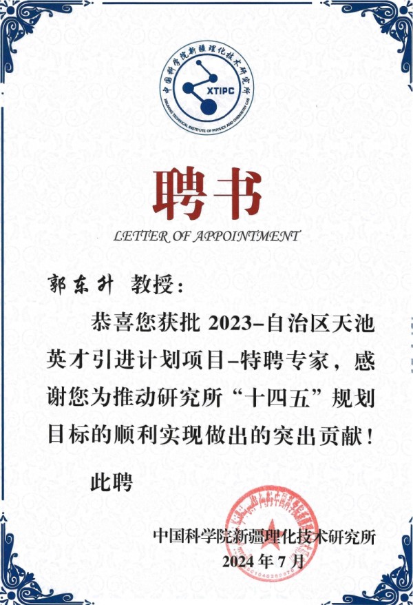 祝贺郭东升教授获批2023-自治区天池英才引进计划项目-特聘专家